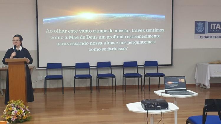 Na sequência, houve pausa para café, seguida da acolhida das regiões pastorais. No período da manhã, a irmã Márcia, do Santuário da Mãe Rainha, apresentou a palestra com o tema “Ela é a grande Missionária”. À tarde, o padre Augusto conduziu a reflexão com o tema “O movimento segue a Jesus pelas mãos da grande Missionária”. Em seguida, presidiu o momento de adoração ao Santíssimo Sacramento.